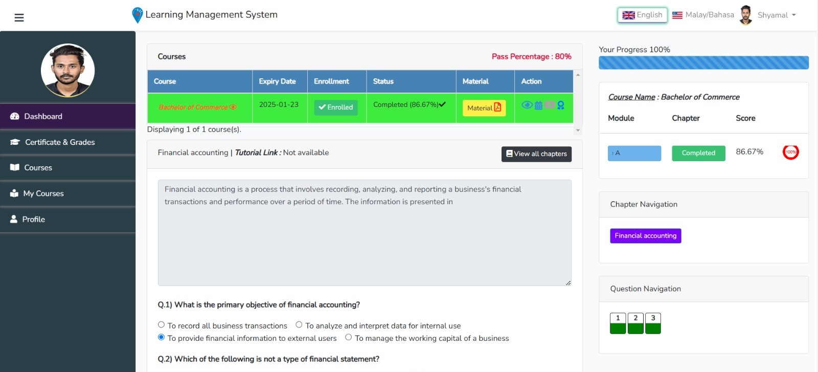 - Built in rules for module completion, pass percentage, maximum duration for completion of course, etc.